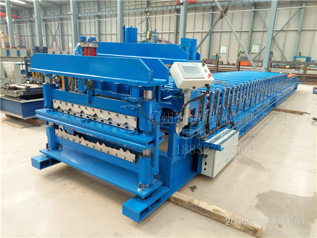 描述:此款三層硫璃瓦壓型機,為一機雙類型硫璃瓦壓型機,基本工作生產制作硫璃瓦,基本工作生產制作淺顯易懂內墻瓦;機械的主熱效率為4KW,籌備會力強,該選果機的滑輪進行車床生產制作而成,每一位部件的精密度!機安裝由鉗工,地步測量安裝。控制器為PLCpc控制器,生產制作鋼板的重量為0.2-0.8mm,全相互液壓式磨具相互封控,出產地,操控簡括。產物描寫: