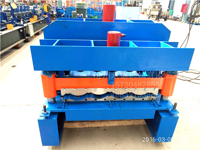 全主動828琉璃瓦彩鋼壓瓦機,該機器裝備首要由裝料架,裝料架支座,進料導入平臺,校平裝配,壓型主機,定型裝配,成型剪切裝配,液壓泵站,全數控電腦主動節制柜等幾局部構成. 機器簡介:828琉璃瓦壓型機的壓型輥輪接納Cr12材質,經機床精車、精磨、鍍硬絡處置后,達58-62度,該壓型機器壓輥輪均接納精工數控車輪扭轉成型,成型結果好,削減輪子和原資料之間的磨擦力,調試便利、,機器的任何零部件均接納設置裝備擺設,為的是機器的品質,壓板平坦,利用壽命長! |